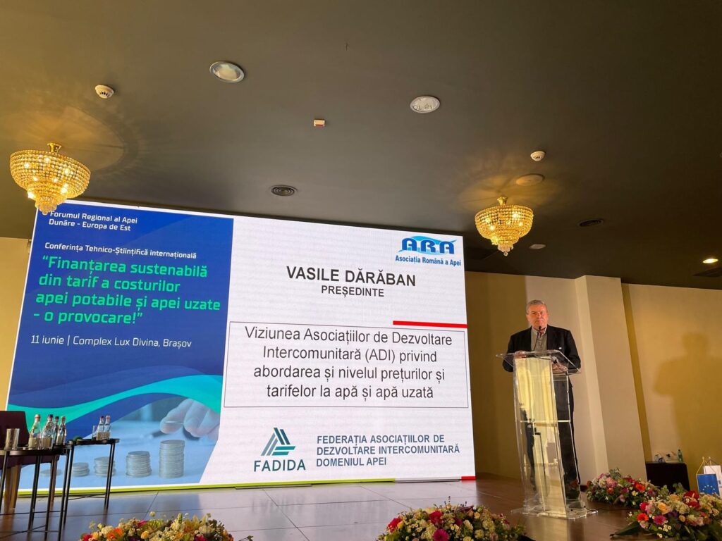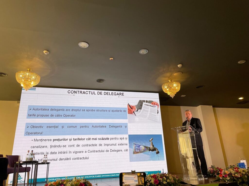 Domnul Președinte FADIDA Vasile Dărăban a fost invitat să participe, în calitate de speaker, la două dintre conferințele organizate cu această ocazie, și anume: „Finanțarea sustenabilă din tarif a costurilor apei potabile și apei uzate – o provocare” și „VIITORUL este ACUM: Industria apei ca proiect de țară 2.0 – soluții integrate de finanțare pentru operatorii regionali de apă și administrația publică”.